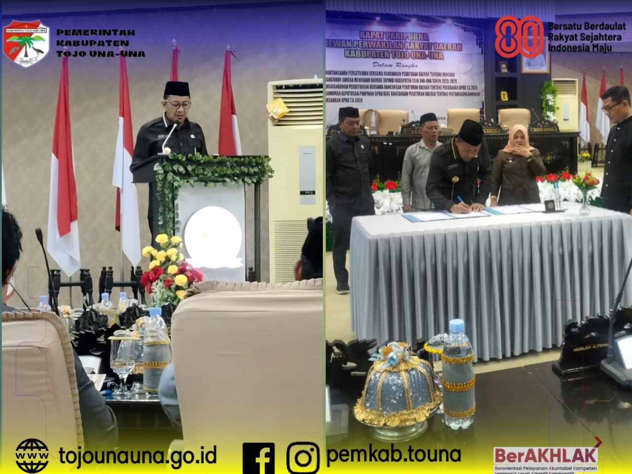 - Penandatanganan Persetujuan bersama Rancangan Peraturan Daerah tentang Rencana Pembanguna Jangka Menengah Daerah (RPJMD) Kabupaten Tojo Una-Una Tahun 2025 - 2029