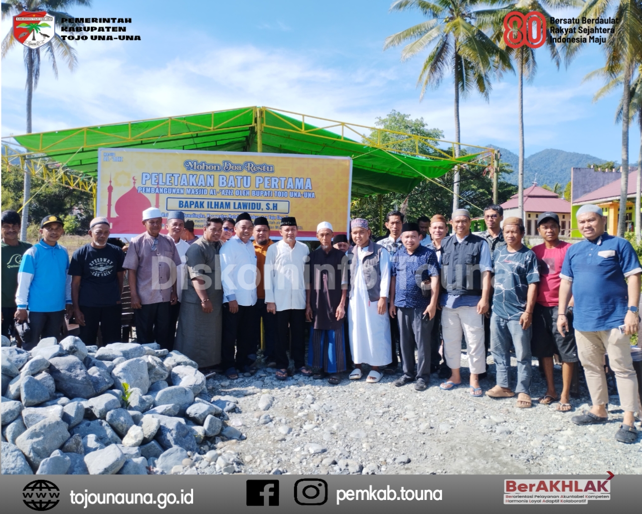 tojounauna.go.id, Touna – Bupati Tojo Una-Una, Ilham Lawidu, secara resmi meletakkan batu pertama sebagai tanda dimulainya pembangunan Masjid Al-'Aziz di Kelurahan Uemalingku, Kecamatan Ratolindo, pada Jumat (12/09/2025).
