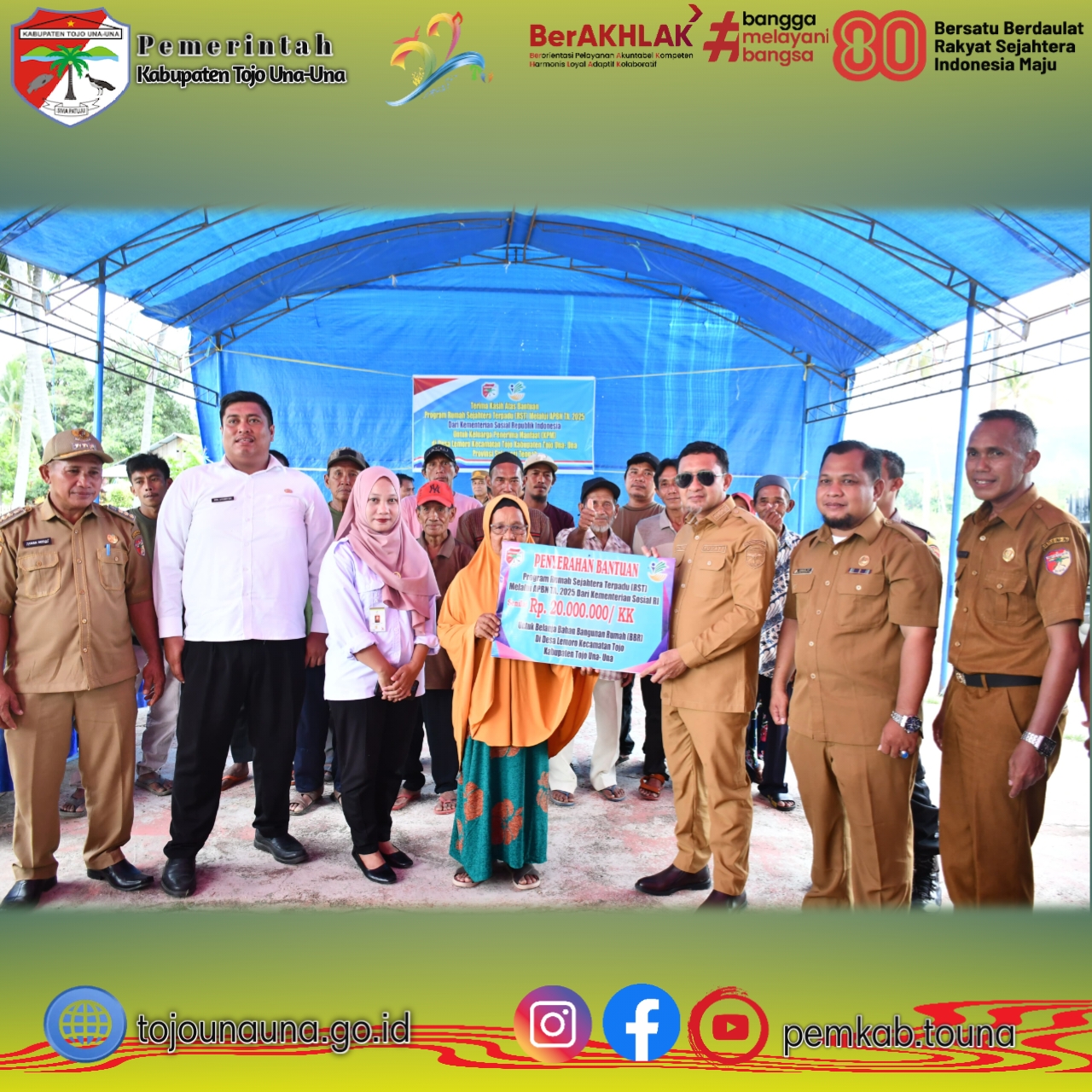 ๐ญ๐จ๐ฃ๐จ๐ฎ๐ง๐๐ฎ๐ง๐.๐ ๐จ.๐ข๐, ๐๐จ๐ฎ๐ง๐ - Pemerintah Kabupaten Tojo Una-Una kembali menunjukkan komitmennya dalam meningkatkan kesejahteraan masyarakat melalui penyaluran Bantuan Program Rumah Sejahtera Terpadu (RST) Tahap 14 Tahun 2025. Program ini disalurkan pada Senin (05/01/2025) dan didanai melalui Anggaran Pendapatan dan Belanja Negara (APBN) Tahun 2025, yang bersumber dari Daftar Isian Pelaksanaan Anggaran (DIPA) Direktorat Jenderal Perlindungan dan Jaminan Sosial Kementerian Sosial Republik Indonesia.