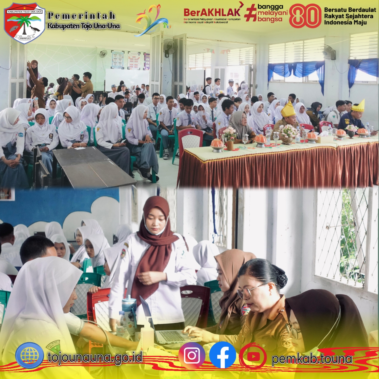𝐓𝐨𝐮𝐧𝐚, 𝐭𝐨𝐣𝐨𝐮𝐧𝐚𝐮𝐧𝐚.𝐠𝐨.𝐢𝐝 - Pemerintah Kabupaten Tojo Una-Una melalui Dinas Kesehatan, Pengendalian Penduduk dan Keluarga Berencana Kabupaten Tojo Una-Una melaksanakan kegiatan Gerakan Berani Cek Kesehatan Gratis Terpadu (Gebyar Cegat) pada Senin (13/4/2026), bertempat di SMA Negeri 1 Ampana Kota.