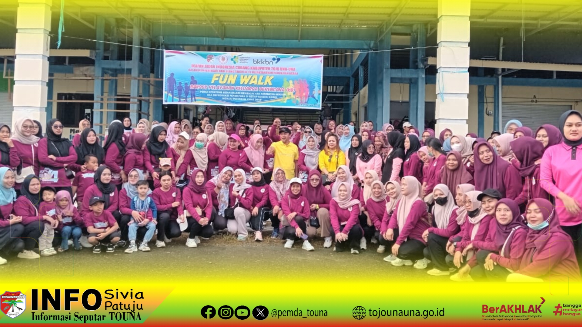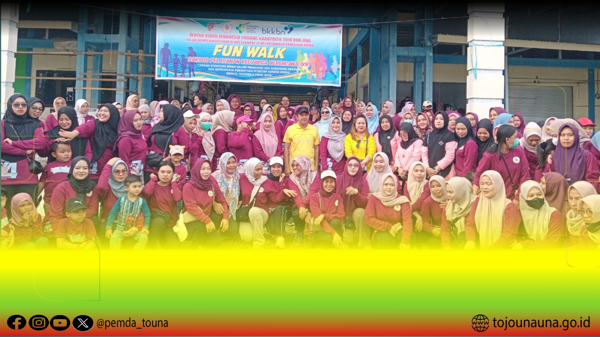 PemdaTouna, Ampana - Bupati Tojo Una Una, Ilham Lawidu menghadiri sekaligus membuka secara resmi kegiatan Fun Walk dalam rangka memperingati Hari Ulang Tahun (HUT) Ikatan Bidan Indonesia (IBI) ke 74. Bertempat di Pasar Rakyat, Desa Sansarino, Kecamatan Ampana Kota, Sabtu (21/06/2025).
