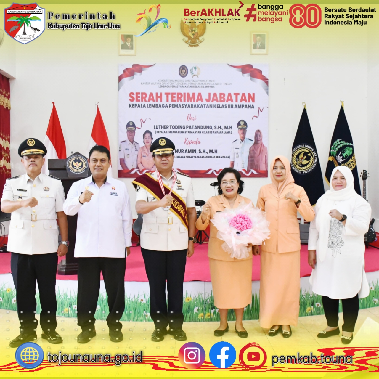 “Pengabdian bapak selama ini telah memberikan warna positif bagi pelaksanaan tugas pemasyarakatan di Kabupaten Tojo Una-Una, terutama dalam meningkatkan pembinaan, disiplin, serta sinergi dengan pemerintah daerah dan aparat penegak hukum lainnya,” ujar Wabup Surya.