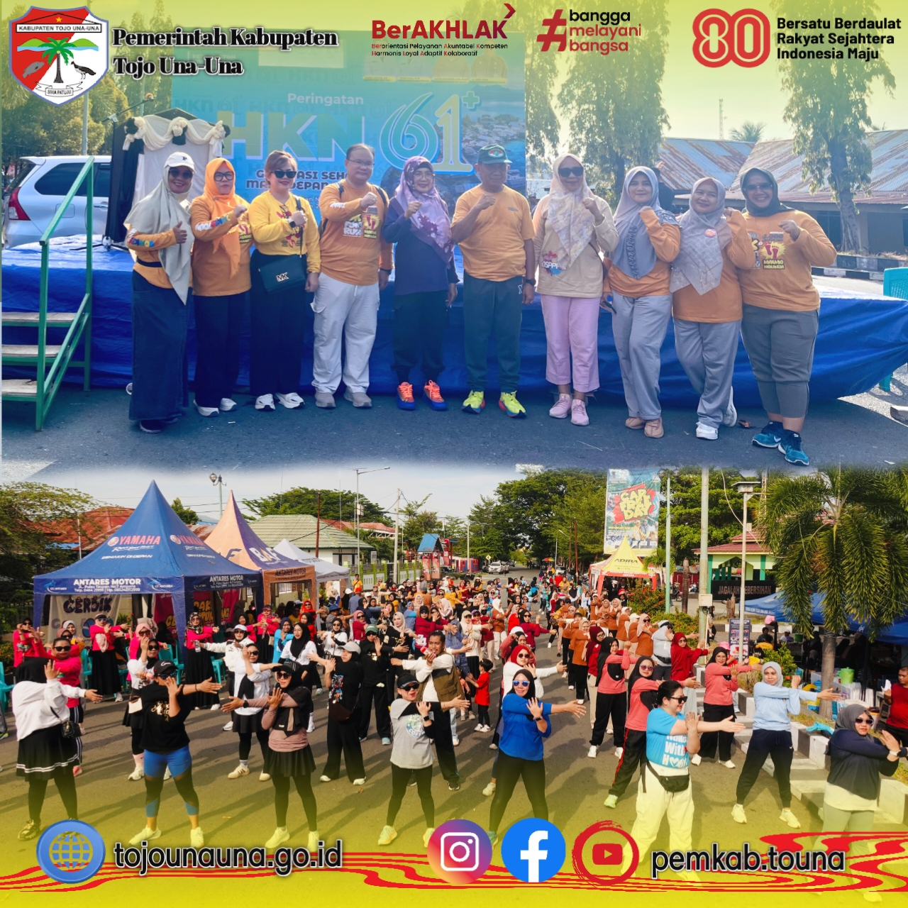 𝐭𝐨𝐣𝐨𝐮𝐧𝐚𝐮𝐧𝐚.𝐠𝐨.𝐢𝐝, 𝐓𝐨𝐮𝐧𝐚 - Pemerintah Kabupaten Tojo Una-Una memperingati Hari Kesehatan Nasional (HKN) ke-61 Tahun 2025 melalui kegiatan “Mai’mo Molinja”, senam sehat, dan lomba gembira anak yang berlangsung meriah di Taman JH, Ampana, pada Minggu (2/11/2025).