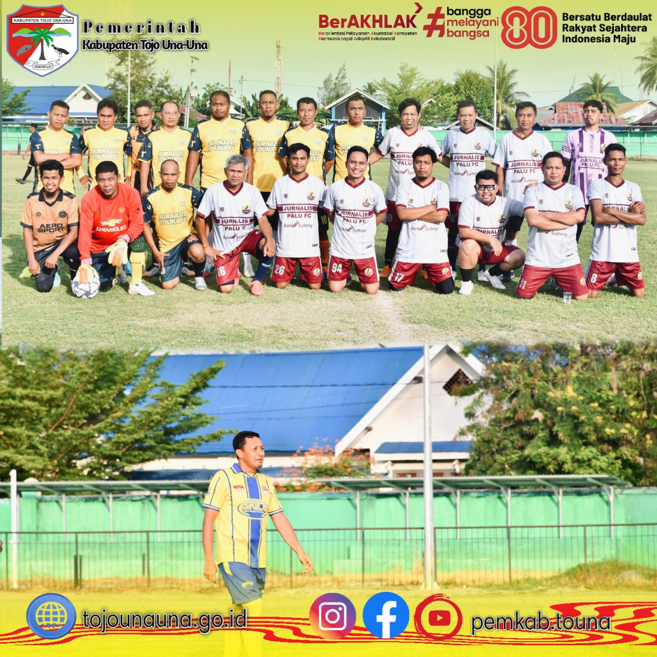 𝐭𝐨𝐣𝐨𝐮𝐧𝐚𝐮𝐧𝐚.𝐠𝐨.𝐢𝐝, 𝐓𝐨𝐮𝐧𝐚 - Lapangan Stamina Ampana menjadi saksi meriahnya pertandingan sepak bola persahabatan antara Pemerintah Daerah Kabupaten Tojo Una-Una, Jurnalis Touna FC, dan Jurnalis Palu FC, Minggu sore, 30/11/2025