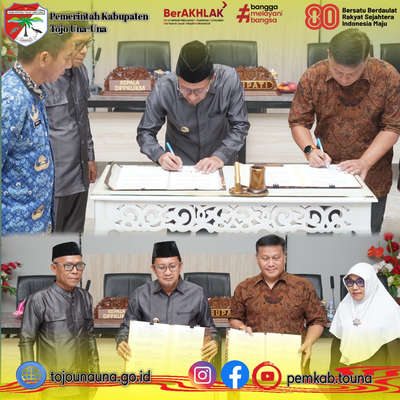 𝐭𝐨𝐣𝐨𝐮𝐧𝐚𝐮𝐧𝐚.𝐠𝐨.𝐢𝐝, 𝐓𝐨𝐮𝐧𝐚 - Pemerintah kabupaten Tojo Una-Una secara resmi menjalin kerjasama dengan PT Midi Utama Indonesia tbk melalui penandatangan Dokumen Kesepakatan bersama dan perjanjian kerjasama pada Senin 10 November 2025.