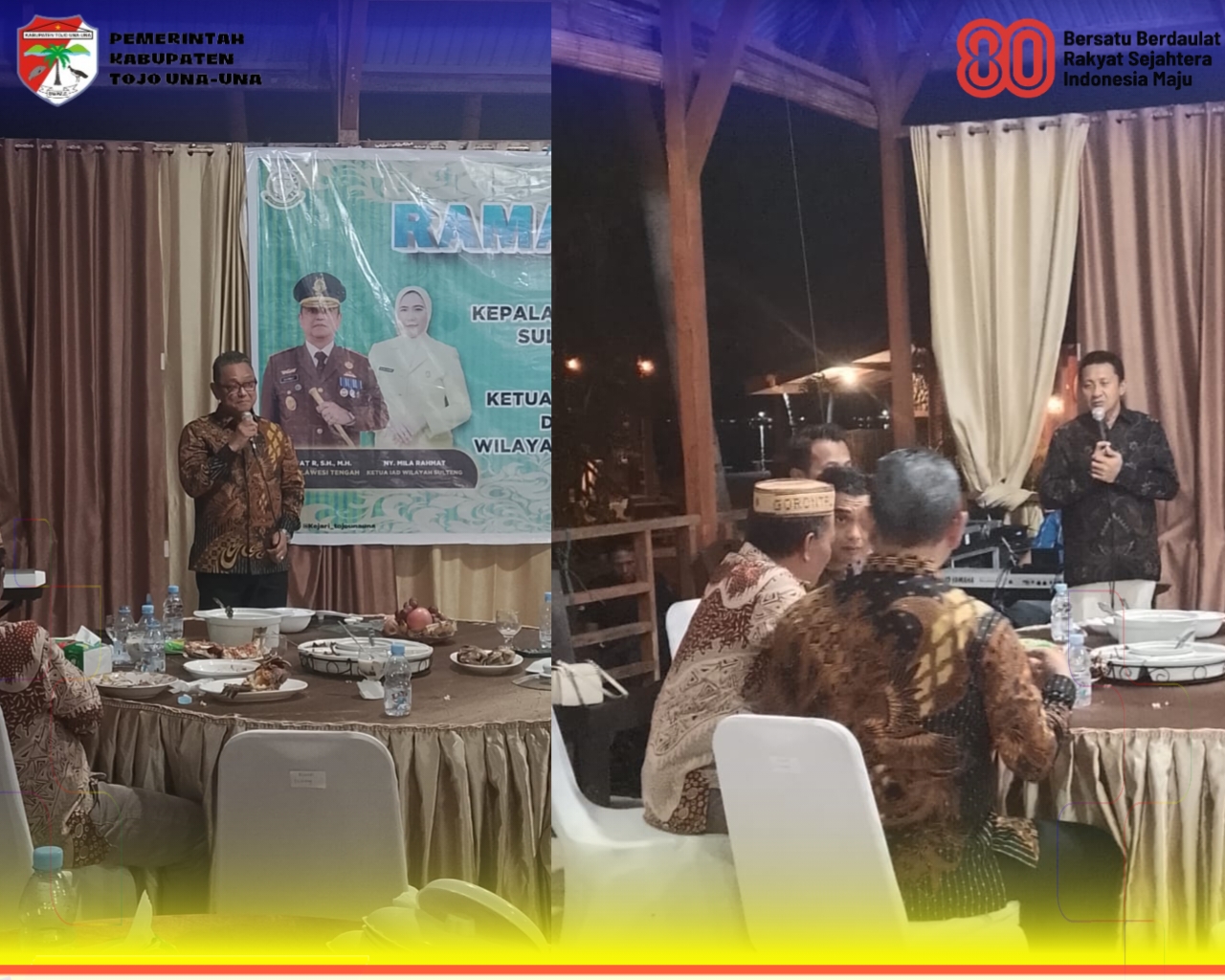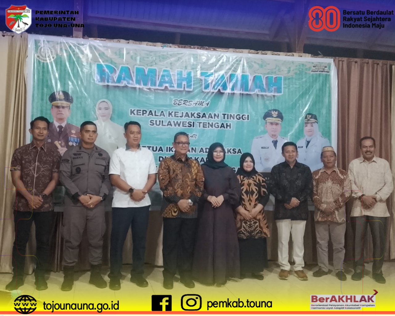 ๐ญ๐จ๐ฃ๐จ๐ฎ๐ง๐๐ฎ๐ง๐.๐ ๐จ.๐ข๐, ๐๐จ๐ฎ๐ง๐ - Bupati Tojo Una-Una, Ilham Lawidu didampingi Wakil Bupati Tojo Una-Una, Hj. Surya menyambut hangat kedatangan Kejaksaan Tinggi (Kejati) Sulawesi tengah dan Ketua Adhyaksa Dharma Karini (IAD) wilayah Sulawesi Tengah di Aula Marina Cotage, Kamis Malam, (25/09/25).
