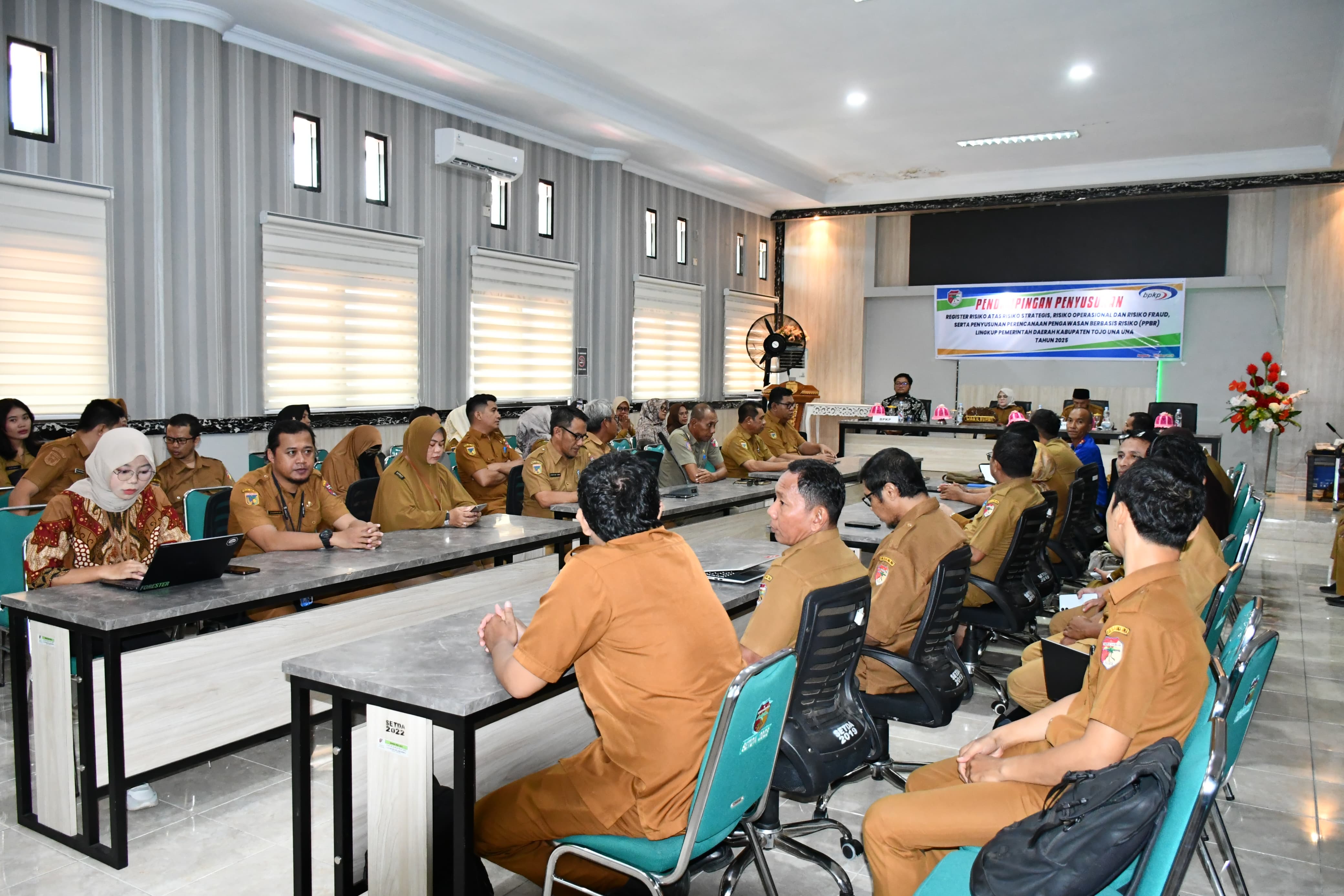 ๐ญ๐จ๐ฃ๐จ๐ฎ๐ง๐๐ฎ๐ง๐.๐ ๐จ.๐ข๐, ๐๐จ๐ฎ๐ง๐ -Pemerintah Daerah Kabupaten Tojo Una-Una tengah melaksanakan kegiatan pendampingan penyusunan register risiko yang mencakup berbagai kategori, antara lain risiko strategis, risiko operasional, dan risiko fraud. Kegiatan ini juga mencakup penyusunan Perencanaan Program dan Kegiatan Berbasis Risiko (PPBR) sebagai bagian dari upaya memperkuat tata kelola pemerintahan yang transparan, akuntabel, dan efektif. Kegiatan pendampingan ini secara resmi dibuka oleh Wakil Bupati Tojo Una-Una, Hj. Surya Lapasiri, yang berlangsung di ruang rapat Kantor Bupati pada Selasa (21/10/2025).