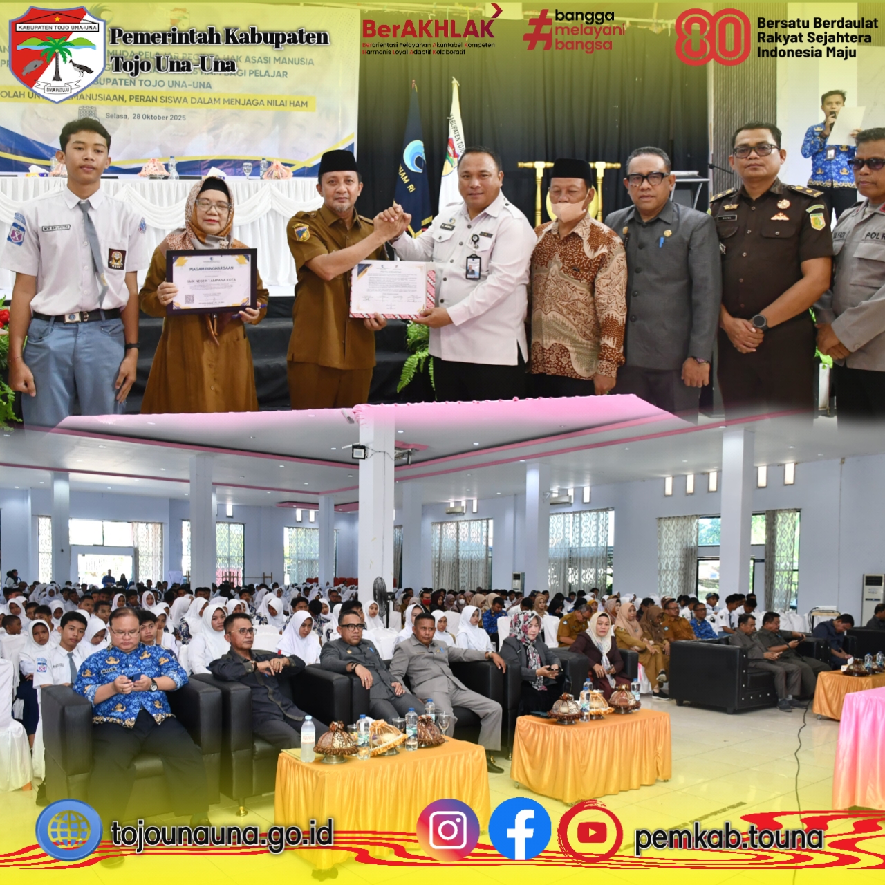 𝐭𝐨𝐣𝐨𝐮𝐧𝐚𝐮𝐧𝐚.𝐠𝐨.𝐢𝐝, 𝐓𝐨𝐮𝐧𝐚 - Kantor Wilayah Kementerian Hukum dan Hak Asasi Manusia (Kemenkumham) Republik Indonesia Provinsi Sulawesi Tengah bekerja sama dengan Dinas Pendidikan dan Kebudayaan Kabupaten Tojo Una-Una melaksanakan kegiatan Pencanangan Komunitas Pemuda Pelajar Pencinta Hak Asasi Manusia (KOPPETA HAM) serta Penguatan Kapasitas HAM bagi Pelajar, pada Selasa (28/10/2025).