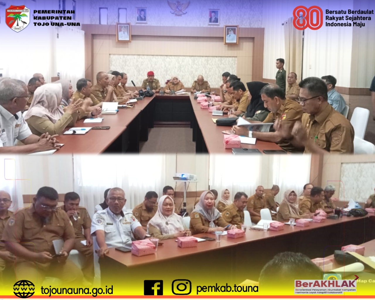 𝐭𝐨𝐣𝐨𝐮𝐧𝐚𝐮𝐧𝐚.𝐠𝐨.𝐢𝐝, 𝐓𝐨𝐮𝐧𝐚 - Pemerintah Kabupaten Tojo Una-Una, melalui Ibu Wakil Bupati Hj. Surya Lapasiri yang didampingi Sekretaris Daerah, Alfian Matajeng dan Kepala Badan Perencanaan Pembangunan, Riset dan Inovasi Daerah Kabupaten Tojo Una-Una, Muhamad Arsyad beserta seluruh Pimpinan Organisasi Perangkat Daerah menggelar Rapat Persiapan Kunjungan Kerja Gubernur dan Ibu Wakil Gubernur di ruang Rapat Eksekutif kantor Bupati Tojo Una-Una, Selasa 14 Oktober 2025