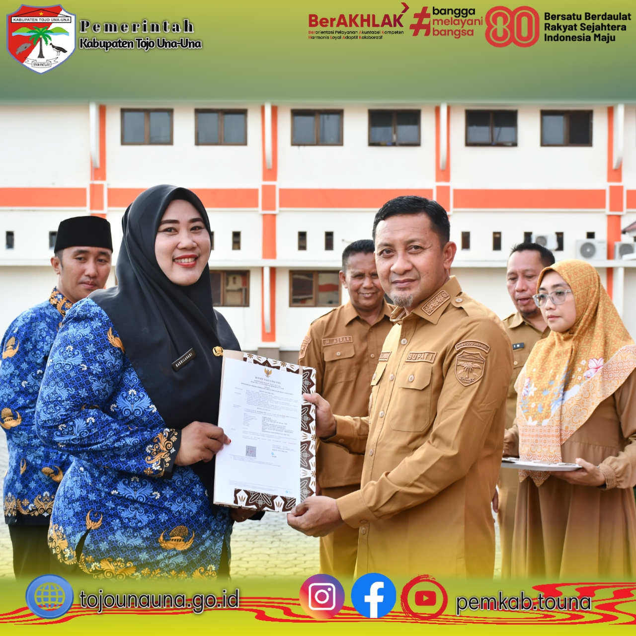 ๐ญ๐จ๐ฃ๐จ๐ฎ๐ง๐๐ฎ๐ง๐.๐ ๐จ.๐ข๐, ๐๐จ๐ฎ๐ง๐ - Bupati Tojo Una-Una, Ilham Lawidu, secara resmi menyerahkan Surat Keputusan (SK) pengangkatan Pegawai Pemerintah dengan Perjanjian Kerja (PPPK) Paruh Waktu Tahun 2025 kepada 363 tenaga honorer di lingkungan Pemerintah Kabupaten Tojo Una-Una. Penyerahan SK tersebut berlangsung di Halaman Kantor Bupati Tojo Una-Una, Senin sore (29/12/2025), dan disambut antusias oleh para penerima.