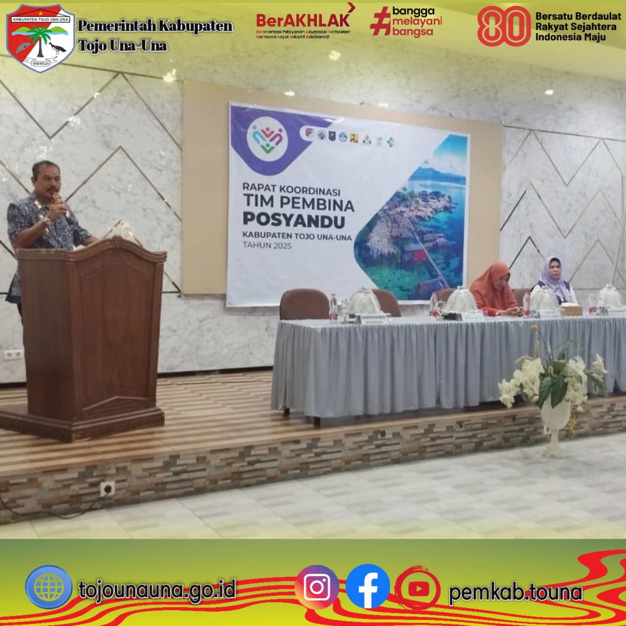 โSemoga segala upaya yang kita lakukan dicatat sebagai amal baik dan membawa manfaat bagi seluruh masyarakat Tojo Una-Una. Melalui Rapat Koordinasi Posyandu Tingkat Kabupaten Tojo Una-Una Tahun 2025 ini, marilah kita teguhkan komitmen untuk terus bekerja dengan semangat pelayanan, kebersamaan, dan keikhlasan demi terwujudnya Tojo Una-Una yang religius, maju, adil, dan sejahtera berbasis sektor unggulan yang berkelanjutan,โ tutup Sekda.