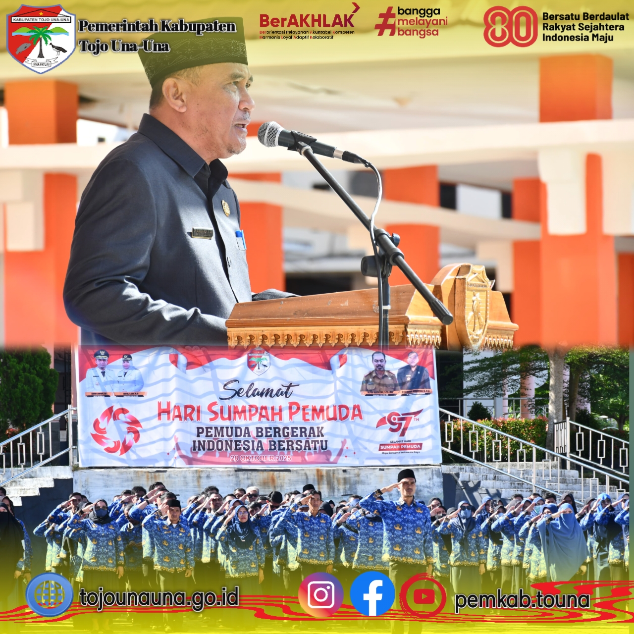 ๐ญ๐จ๐ฃ๐จ๐ฎ๐ง๐๐ฎ๐ง๐.๐ ๐จ.๐ข๐, ๐๐จ๐ฎ๐ง๐ - Pemerintah Kabupaten Tojo Una-Una menggelar Upacara Peringatan Hari Sumpah Pemuda ke-97 di halaman Kantor Bupati Tojo Una-Una, Selasa (28/10/2025). Upacara tahun ini mengusung tema nasional โPemuda Pemudi Bergerak, Indonesia Bersatuโ, yang mencerminkan semangat kolaborasi, persatuan, serta kontribusi nyata generasi muda dalam pembangunan bangsa.