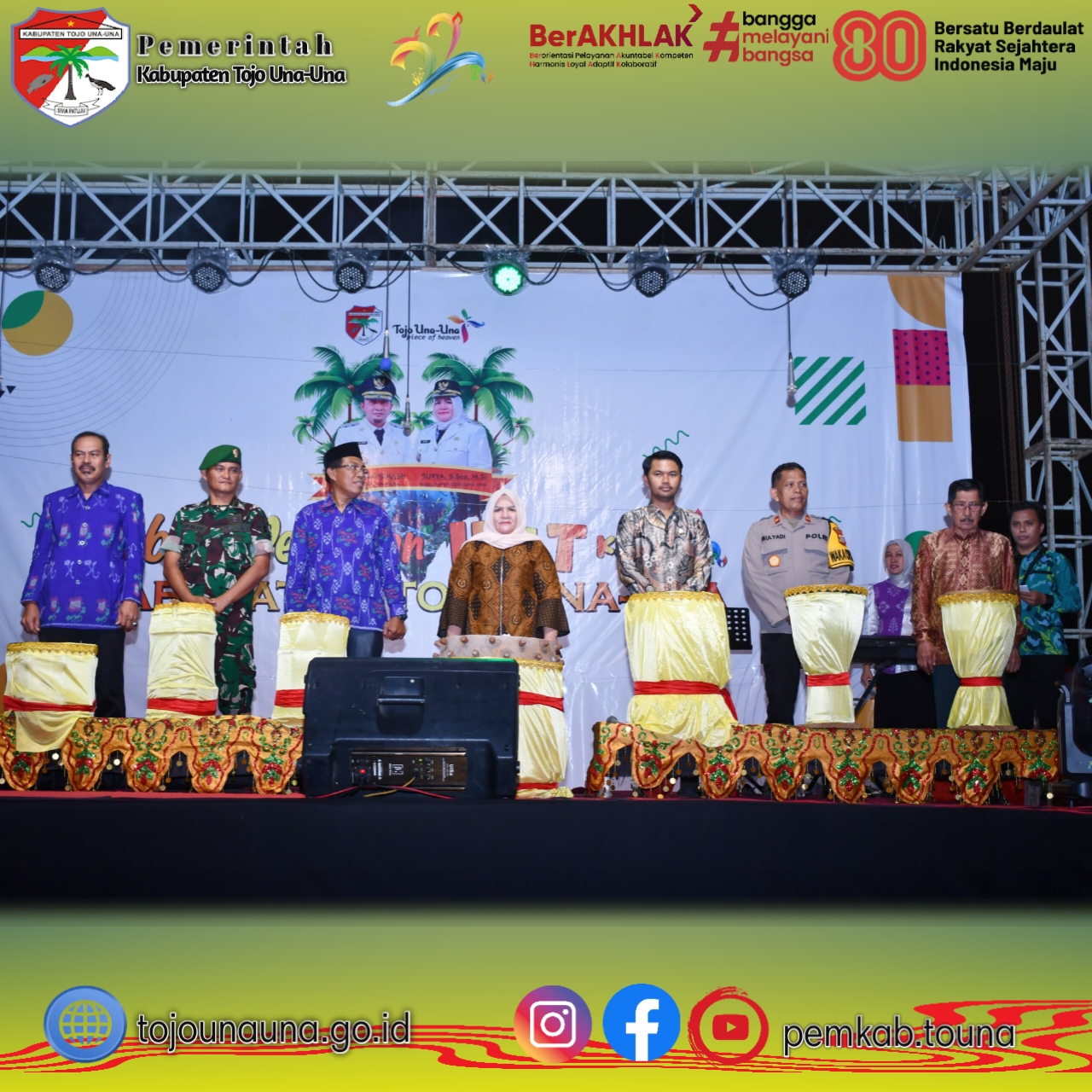 “Pada usia ke-22 tahun ini, Kabupaten Tojo Una-Una telah menunjukkan perkembangan signifikan di berbagai sektor, mulai dari infrastruktur, pendidikan, kesehatan, ekonomi, pariwisata, pertanian, perikanan, pemberdayaan masyarakat hingga pembangunan sumber daya manusia. Semua capaian ini merupakan hasil sinergi dan kerja kolektif seluruh elemen masyarakat,” ujarnya saat membacakan sambutan Bupati.