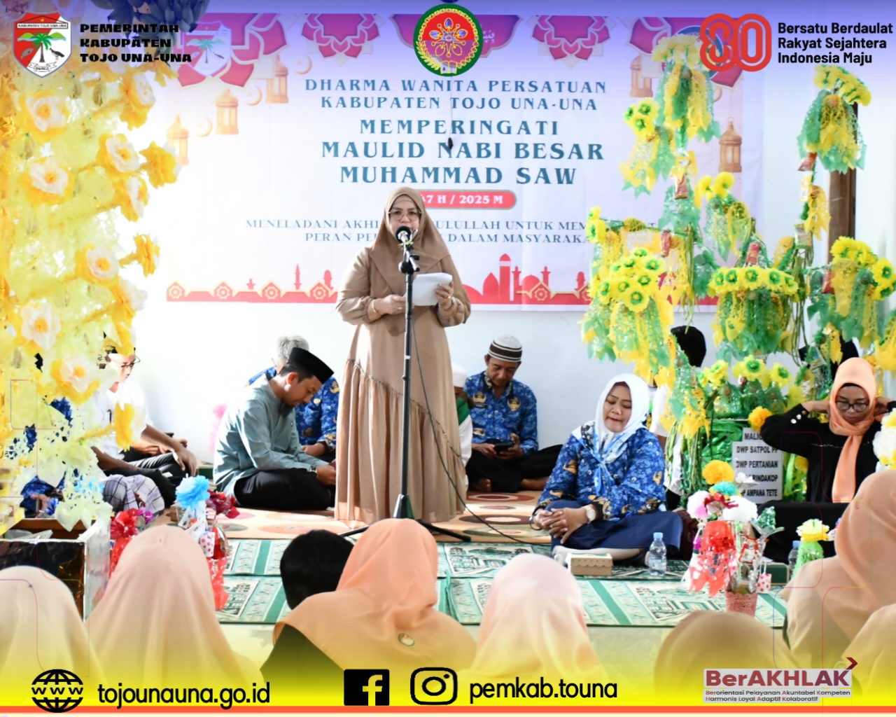๐ญ๐จ๐ฃ๐จ๐ฎ๐ง๐๐ฎ๐ง๐.๐ ๐จ.๐ข๐, ๐๐จ๐ฎ๐ง๐ - Bupati Tojo Una-Una yang diwakili Wakil Bupati Hj. Surya Lapasiri menghadiri peringatan Maulid Nabi Muhammad SAW 1447 Hijriah yang diselenggarakan Dharma Wanita Persatuan Kabupaten Tojo Una-Una, bertempat di Masjid Ikhlasul Amal, Kelurahan Uentanaga Atas, Rabu (17/09/2025).