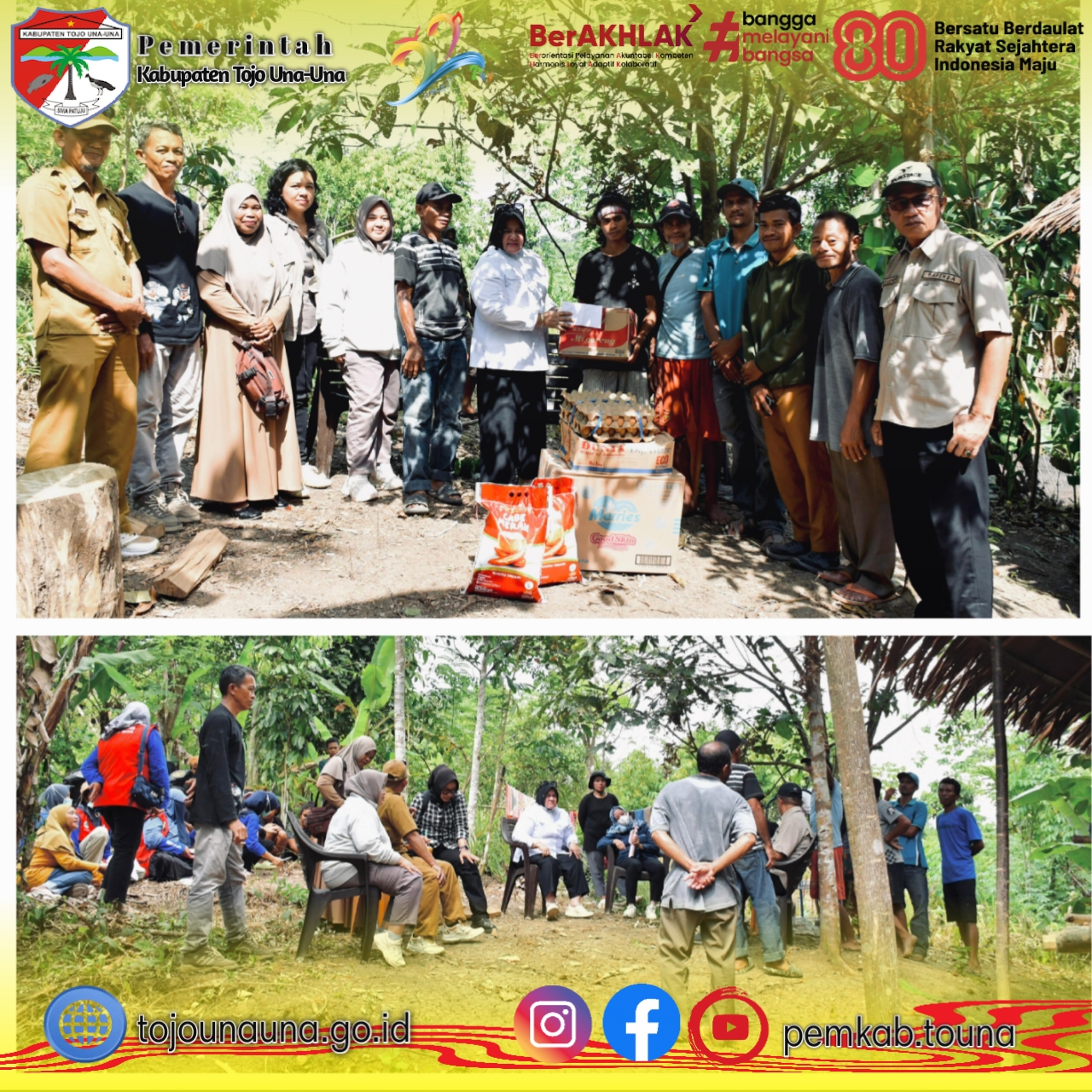 Penyerahan bantuan ini menegaskan komitmen Pemerintah Kabupaten Tojo Una-Una untuk terus hadir dan peduli terhadap masyarakat, termasuk di wilayah terpencil seperti Dataran Bulan, dalam berbagai kondisi dan situasi kemanusiaan.