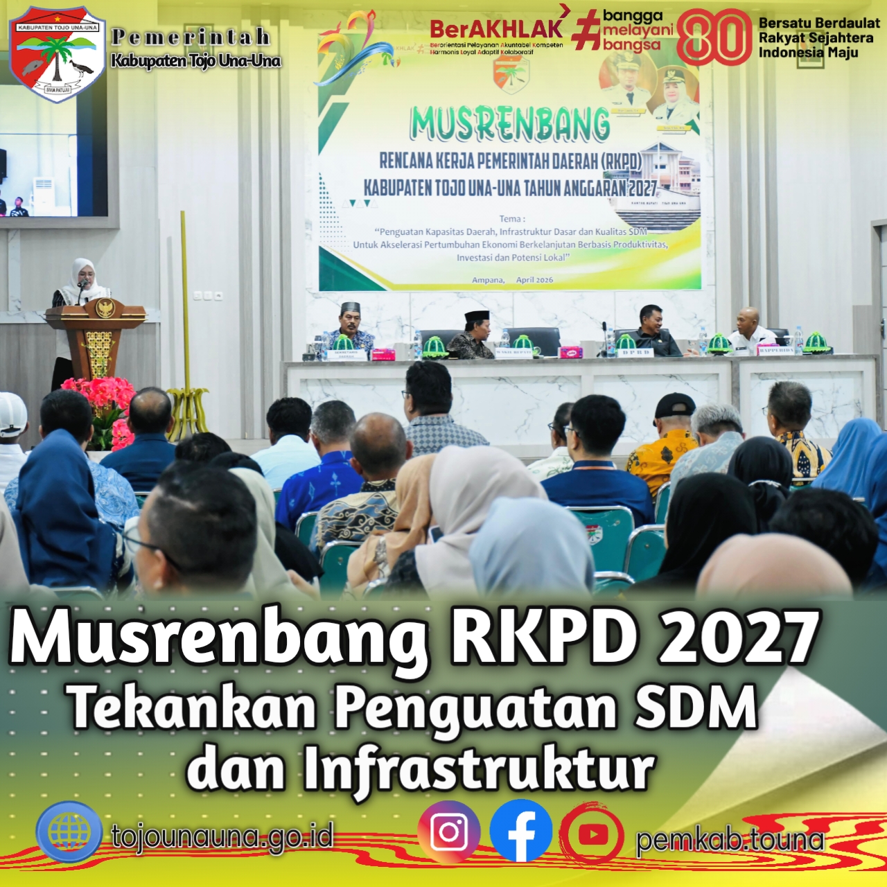Melalui pelaksanaan Musrenbang RKPD Tahun Anggaran 2027 ini, Pemerintah Kabupaten Tojo Una-Una optimistis dapat memperkuat fondasi pembangunan yang berdaya saing dan berkelanjutan, demi terwujudnya kesejahteraan masyarakat secara merata.